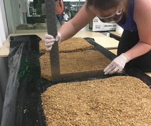 This research investigates reducing waste in mycelium form creation by exploring form-giving derived from form finding through hanging, a technique popularized by Heinz Isler. Isler's method suggests that forms hung under tension can be flipped to support structural loads in compression, achieving precise dimensions without traditional molds. Experiments with plaster and mycelium resulted in uniform shells performing well under compression, suitable for creating stackable, non-load bearing partition screens. The findings demonstrate the efficiency of this hanging process in producing versatile mycelium forms for various configurations.